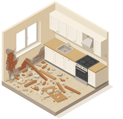 Your kitchen demolition is performed efficiently, making room for modern layouts and improvements. utensils